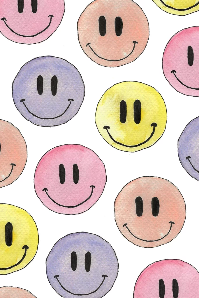 Kaart met een print van smileys, door ons geschilderd met waterverf.