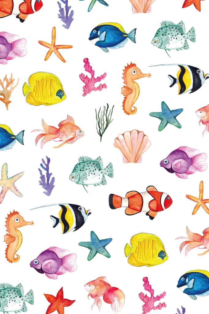 Diep in de zee… diep in de zee! Kaart met een print van vissen, zeesterren, koraal en meer. De vissen zijn door ons geschilderd met waterverf en gedrukt op dik duurzaam papier. Deze ansichtkaart is top als cadeau voor een kind dat gek is op dieren. Verras iemand met deze kaart, of houd 'm lekker zelf.